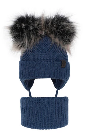Winterset Jungen: Mütze und Schlauchschal mit zwei Bommeln Navy Blau Randel