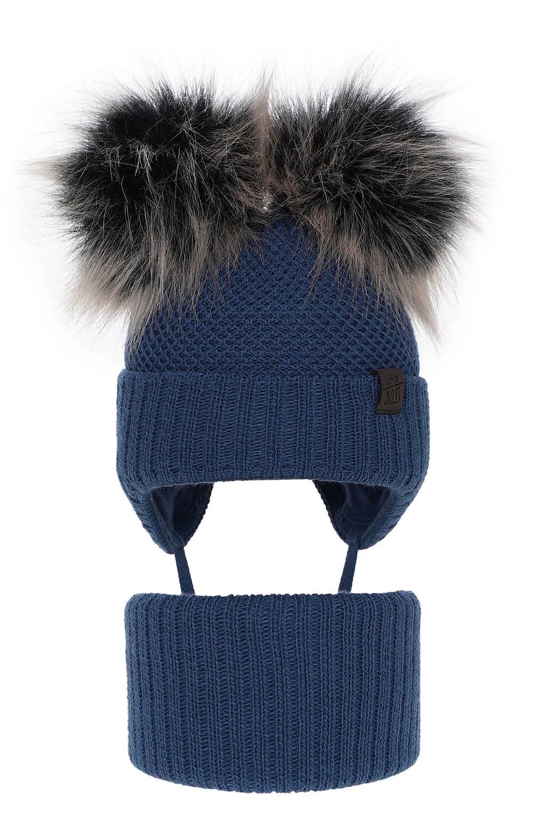 Das moderne Material, aus dem das Set hergestellt wurde, vereint Haltbarkeit mit Zartheit. Dadurch behalten die Mütze und der Schlauchschal Randel auch nach mehrfacher Verwendung ihre Form und ihr Aussehen. Die zwei flauschigen Bommeln aus Kunstfell verleihen der Mütze einen niedlichen Charakter und sorgen dafür, dass Ihr Sohn bei Winterspaziergängen bezaubernd aussieht.