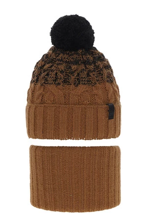 Winterset Jungen: Mütze und Schlauchschal mit Bommel Braun Travis