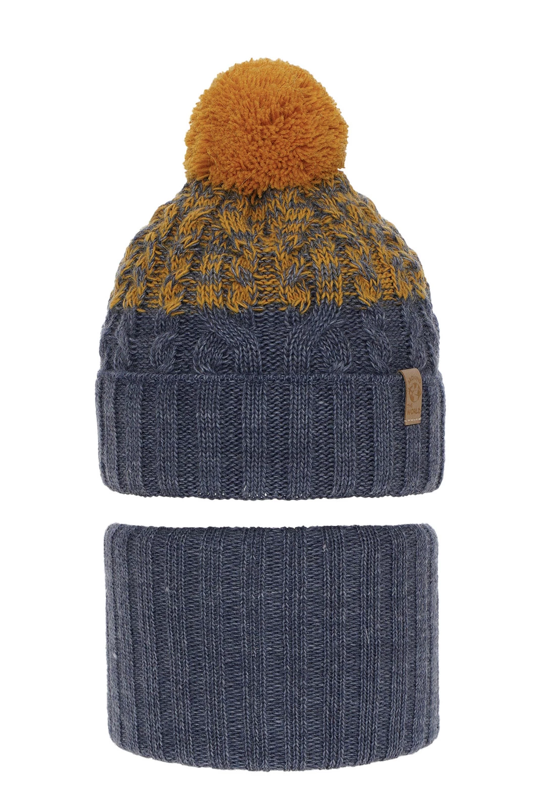 Winterset Jungen: Mütze und Schlauchschal mit Bommel Blau Travis