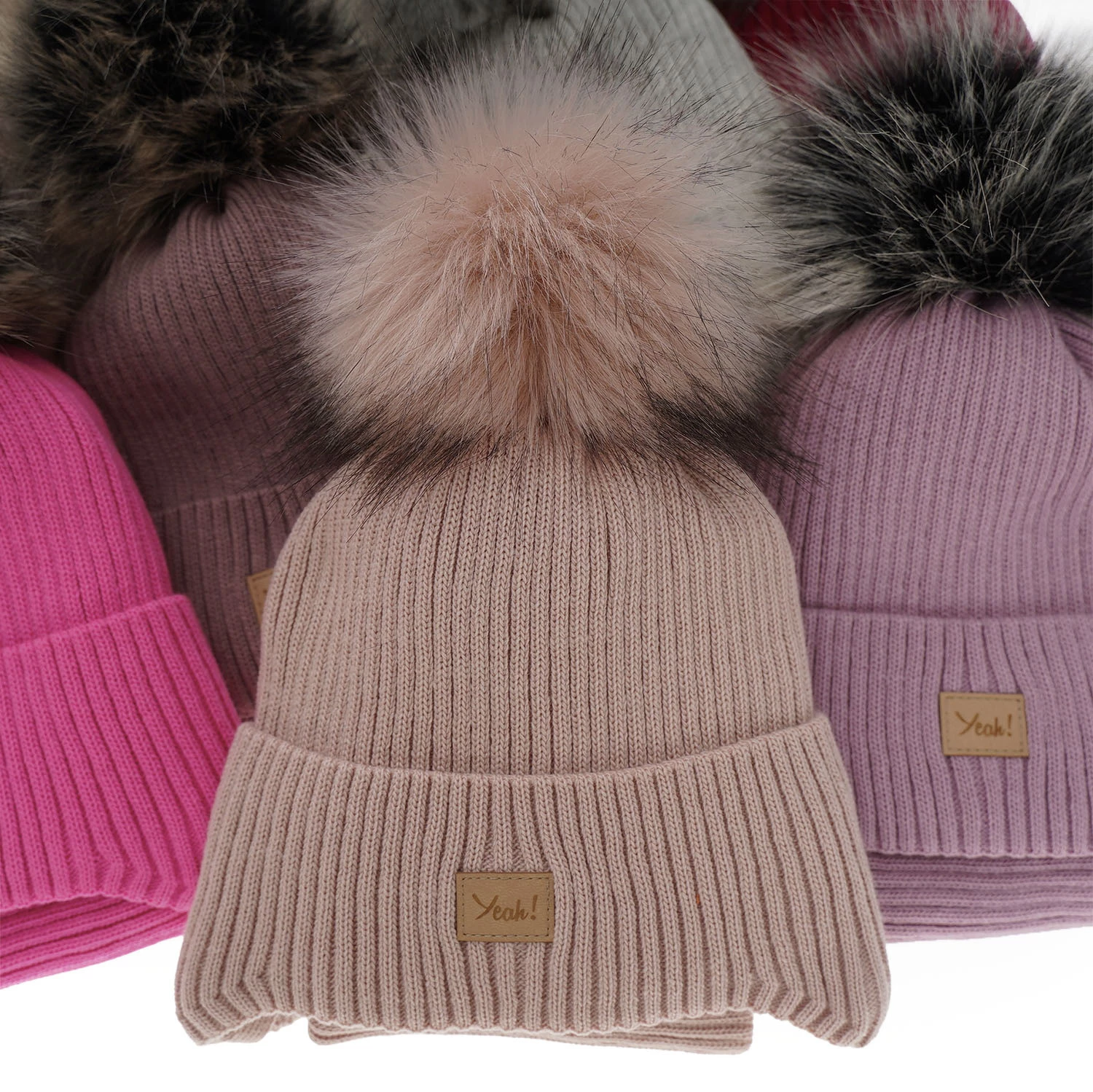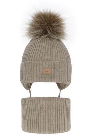 Winterset Mädchen: Mütze und Schlauchschal mit Bommel Beige Dilajla