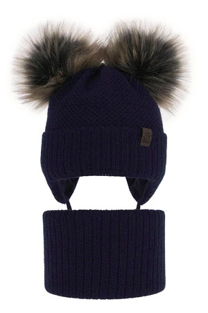 Winterset Jungen: Mütze und Schlauchschal mit zwei Bommeln Navy Blau Randel