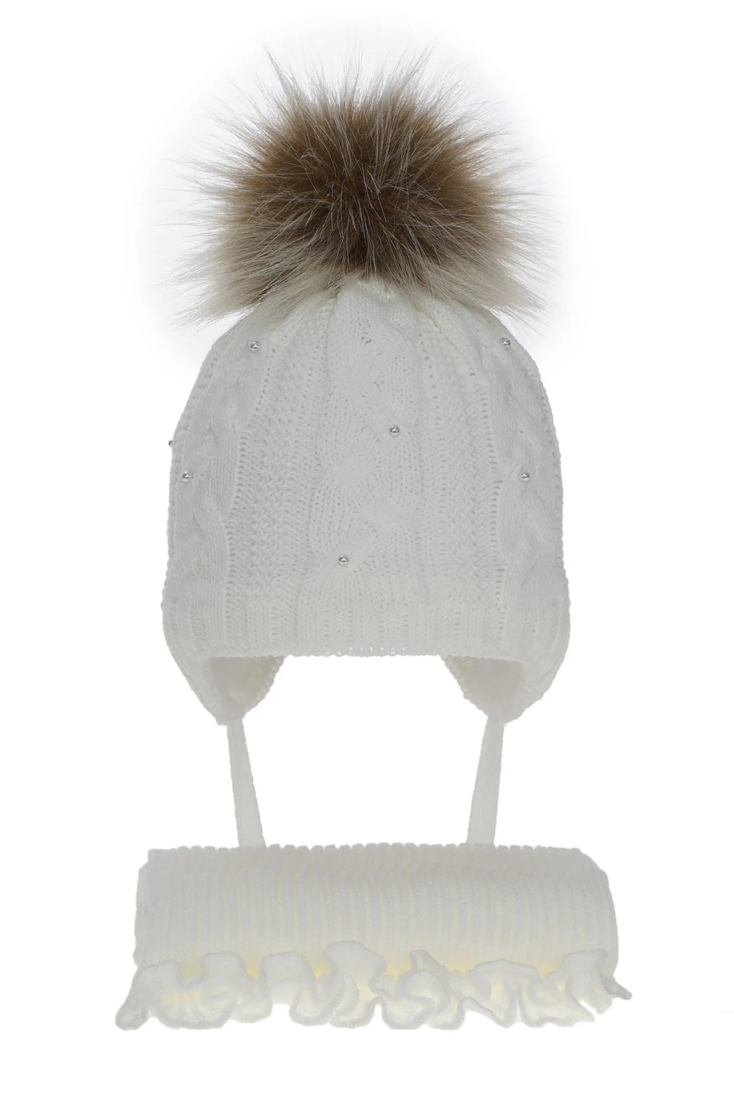Winterset Mädchen: Mütze und Schal mit Bommel Weiß Mirella