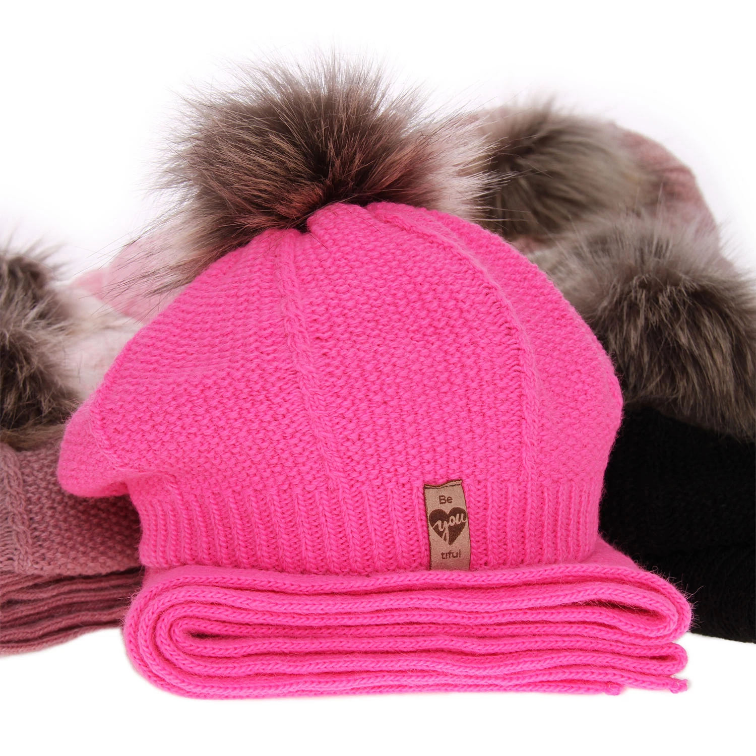Winterset Mädchen: Mütze und Schal mit Bommel Rosa Elif
