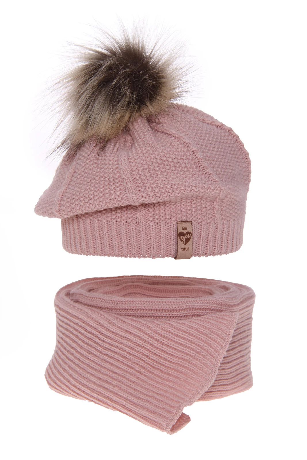 Winterset Mädchen: Mütze und Schal mit Bommel Rosa Elif
