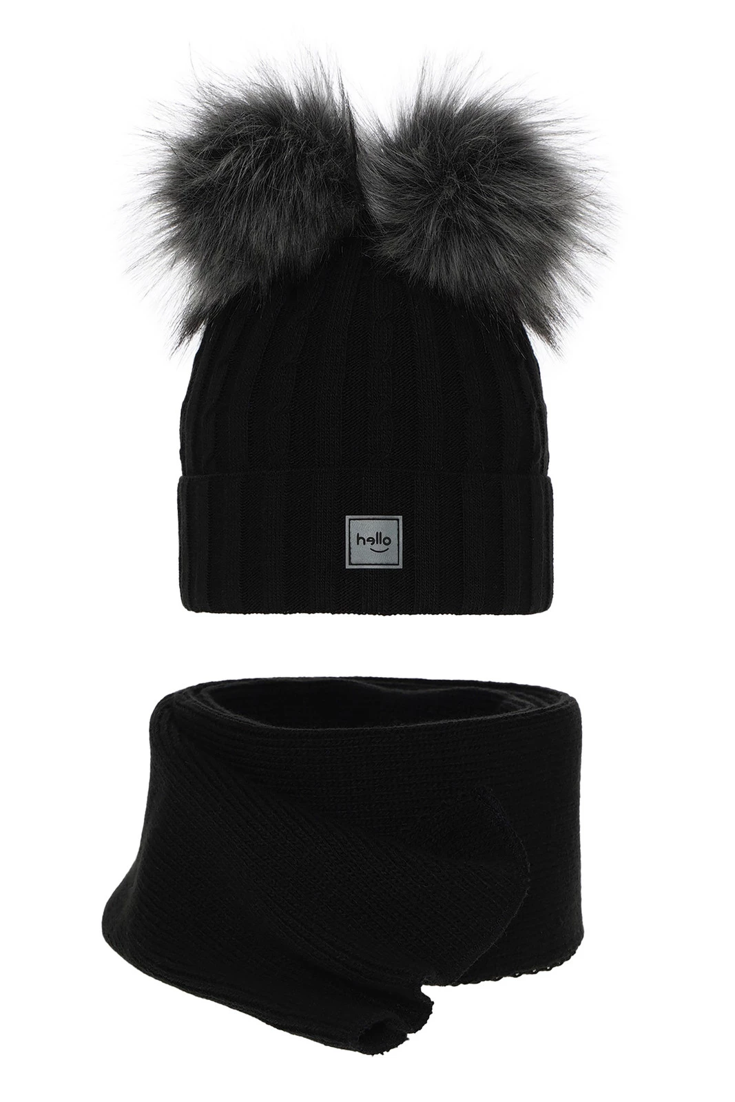 Winterset Mädchen: Mütze und Schal mit zwei Bommeln Schwarz Zenda