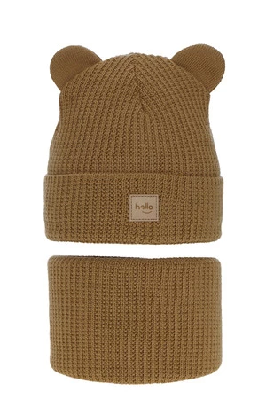 Die Mütze fällt durch ihre charakteristischen, niedlichen Öhrchen an der Oberseite und das sorgfältig gearbeitete Rippenmuster auf, das ihr einen modischen Charakter verleiht. Der kleine, dekorative Aufnäher mit dem "Hello"-Schriftzug ist ein zusätzliches, stylisches Element, das jedem Jungen gefallen wird. Das Winterset Michael vereint Ästhetik mit Funktionalität - genau das, was sowohl Mütter als auch Kinder brauchen.