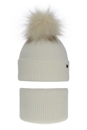 Winterset Mädchen: Mütze und Schlauchschal mit Bommel Cremefarben Reneta