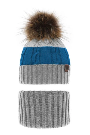 Winterset Jungen: Mütze und Schlauchschal mit Bommel Grau Karmel