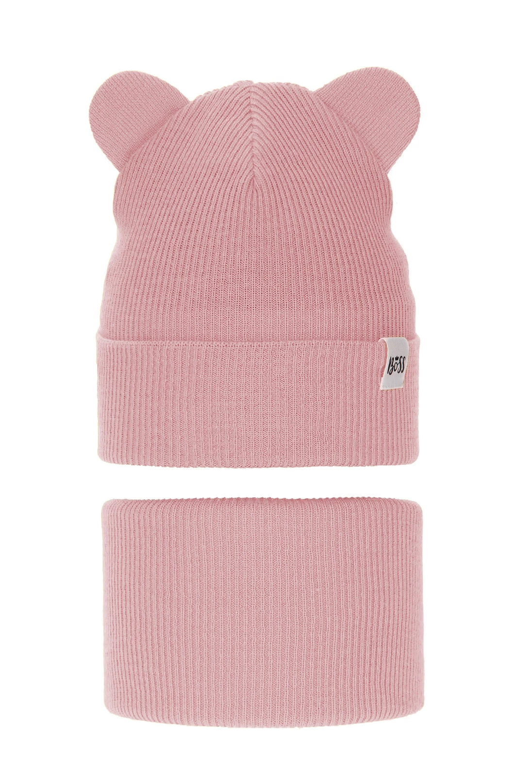 Herbst und Frühlingsset Mädchen: Mütze und Schlauchschal, mit Baumwolle, Rosa Kajra