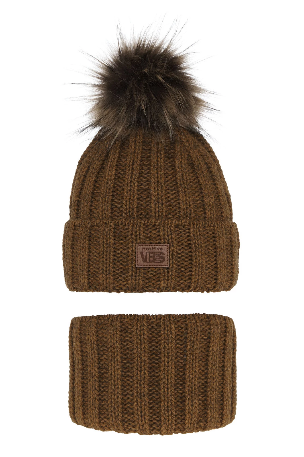 Winterset Jungen: Mütze und Schlauchschal mit Bommel Senffarben Remes