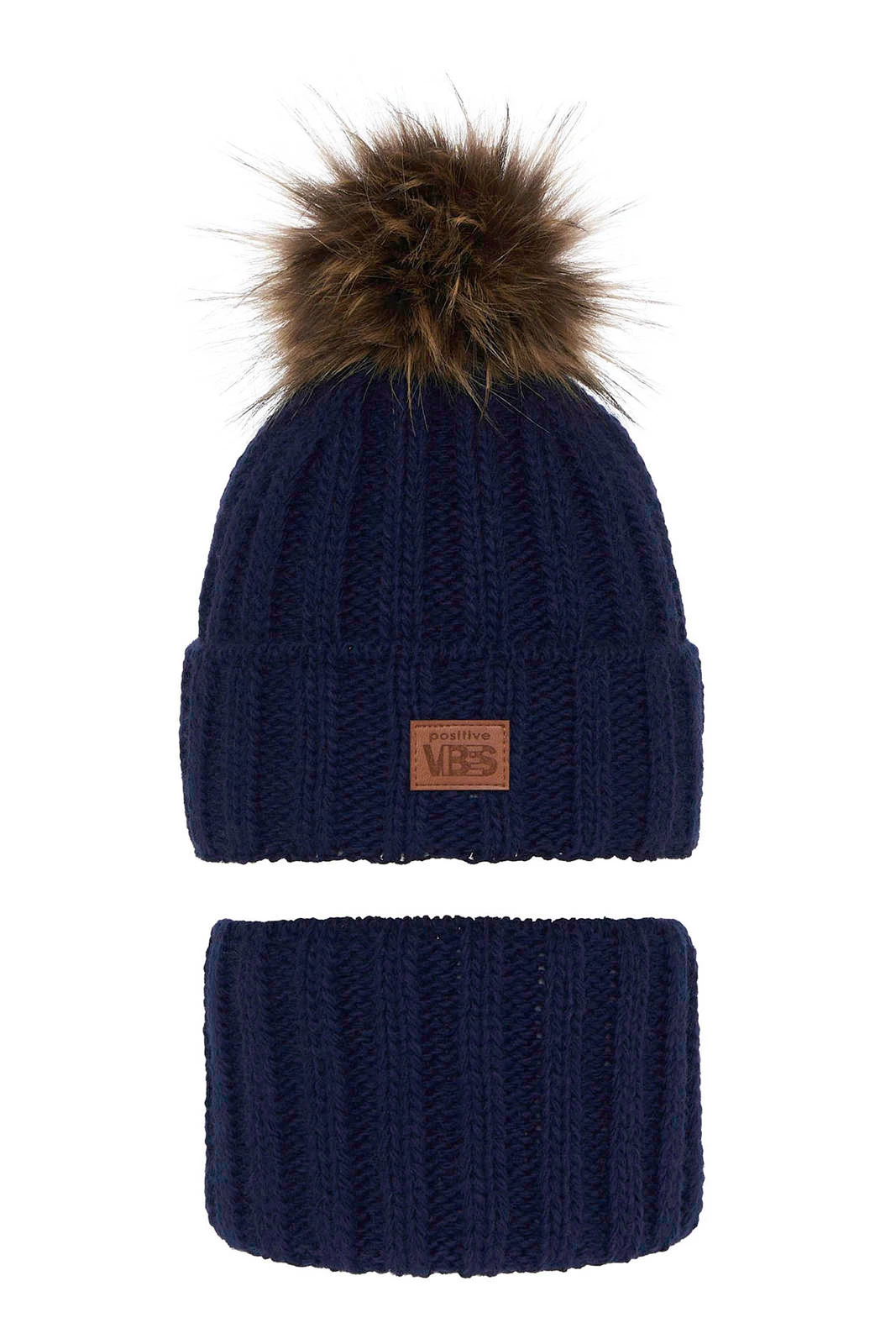 Winterset Jungen: Mütze und Schlauchschal mit Bommel Navy Blau Remes