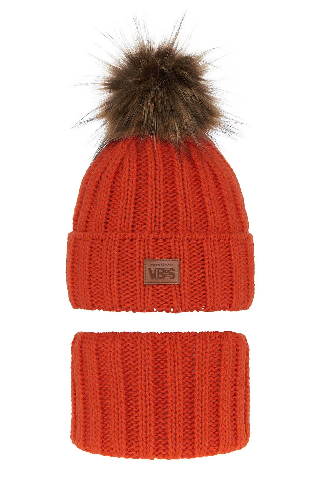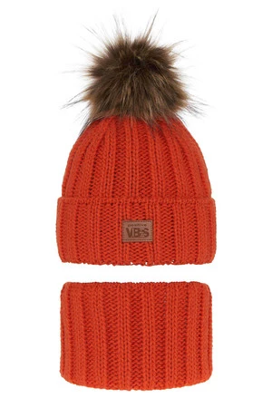 Winterset Jungen: Mütze und Schlauchschal mit Bommel Orange Remes