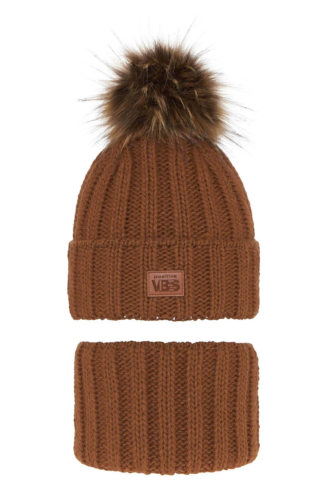 Winterset Jungen: Mütze und Schlauchschal mit Bommel Braun Remes