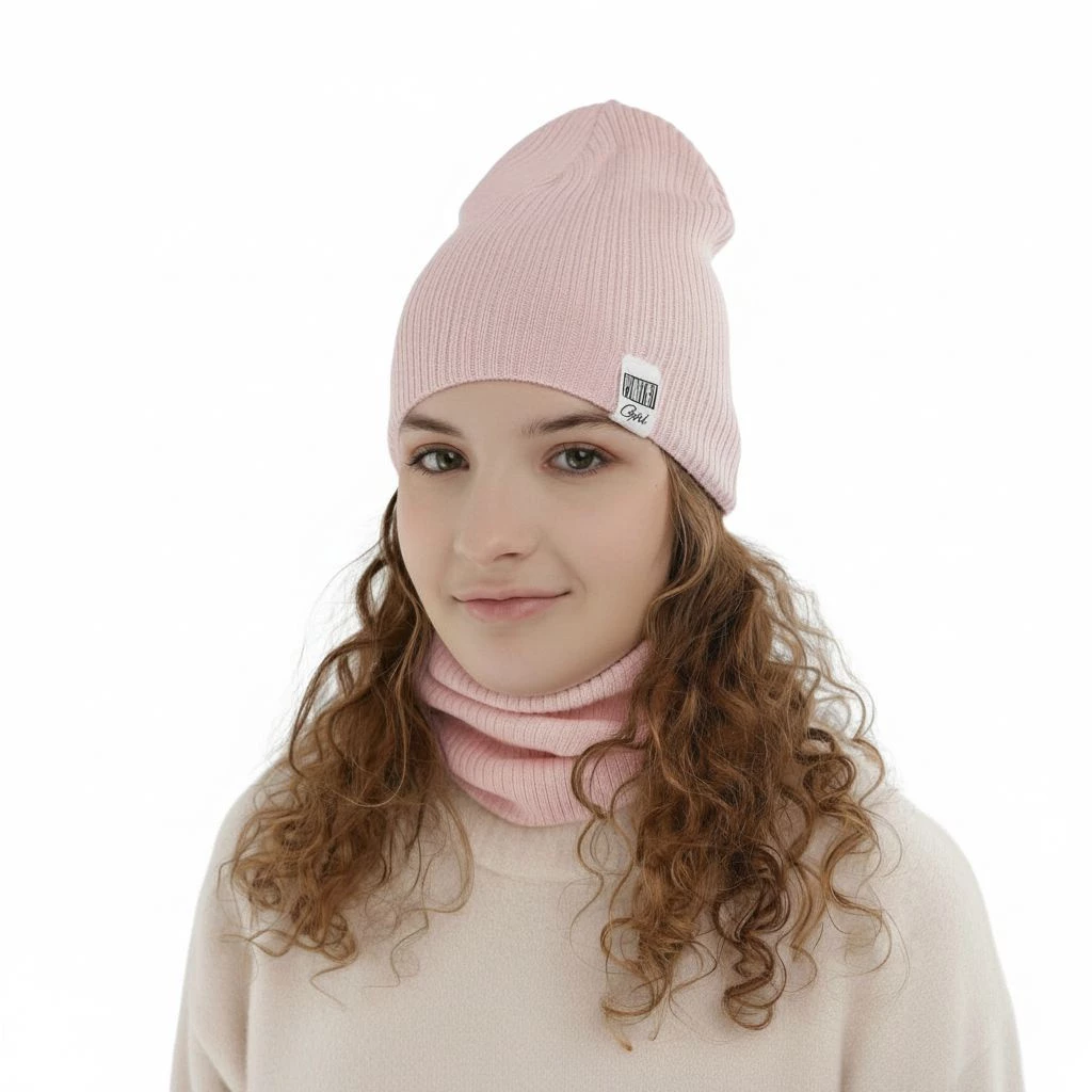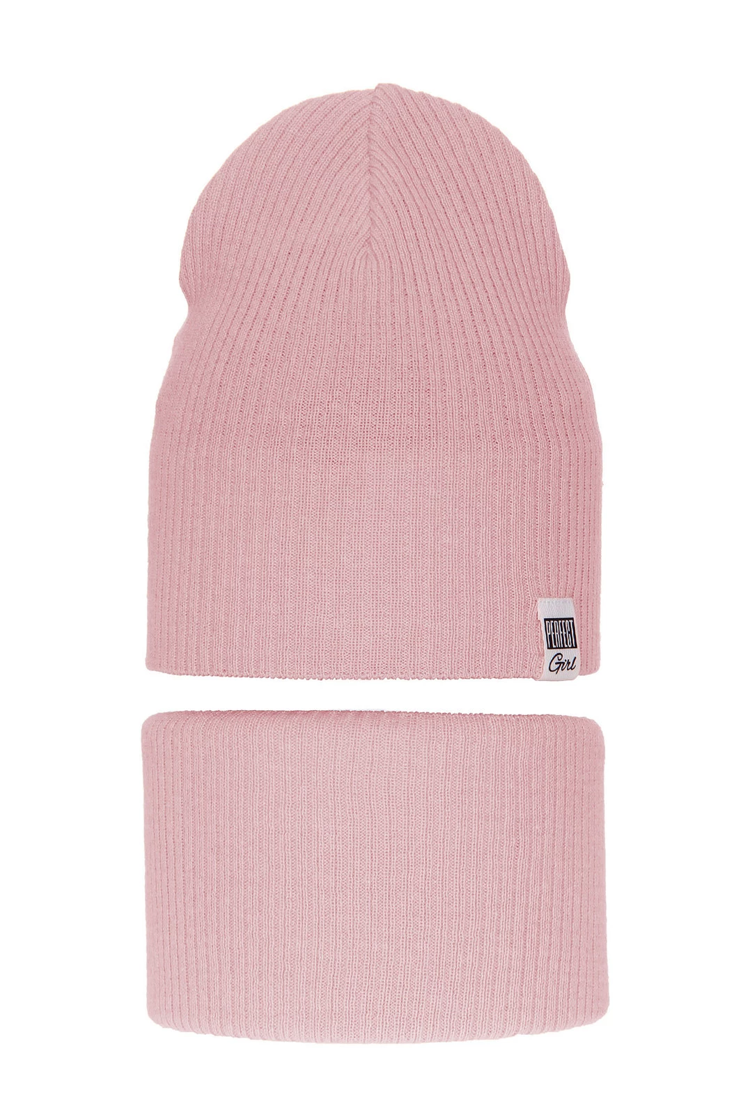 Herbst und Frühlingsset Mädchen: Mütze und Schlauchschal, mit Baumwolle, Rosa Farinka