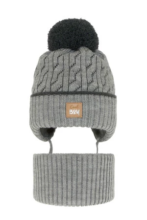 Winterset Jungen: Mütze und Schlauchschal mit Bommel Grau Pikolo