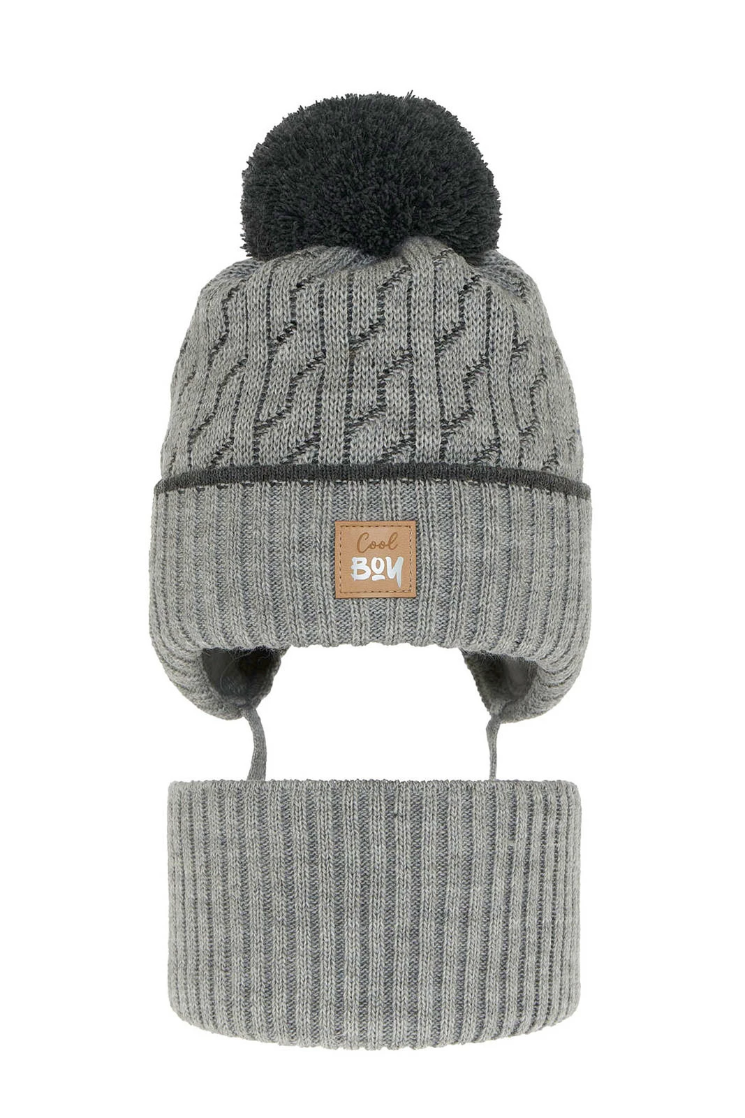 Die Mütze mit weichem Pompon ist nicht nur ein Schutz vor Kälte, sondern auch ein modisches Accessoire für die Wintergarderobe Ihres Jungen. Das besondere Strickmuster verleiht ihr Charakter, und die kleine Applikation mit der Aufschrift "Cool boy" ist ein stylisches Detail, das jedem kleinen Mann gefallen wird. Das Winterset für Jungen ist eine ausgezeichnete Wahl für Mütter, die Wert auf eine Kombination aus Qualität und modernem Aussehen legen.