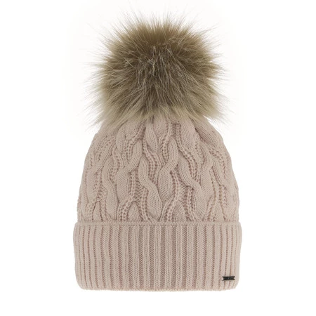 Der Kunstfell-Bommel ist das dekorative Element der Damen-Wintermütze Deva und verleiht ihr einen unverwechselbaren, modischen Charakter. Es ist ein Blickfang, der diese Mütze zum wahren Modehit der Wintersaison macht. Der dezente Metallanhänger mit dem Herstellerlogo unterstreicht subtil den Premium-Charakter des Produkts.