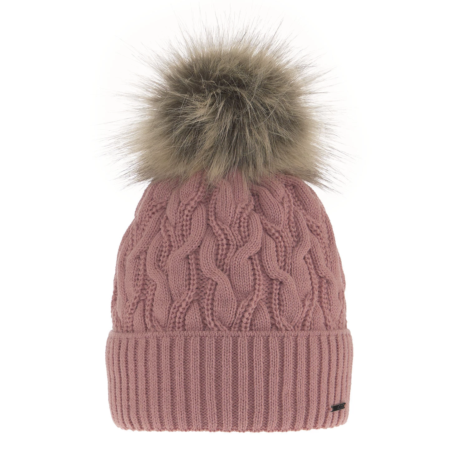 Der Kunstfell-Bommel ist das dekorative Element der Damen-Wintermütze Deva und verleiht ihr einen unverwechselbaren, modischen Charakter. Es ist ein Blickfang, der diese Mütze zum wahren Modehit der Wintersaison macht. Der dezente Metallanhänger mit dem Herstellerlogo unterstreicht subtil den Premium-Charakter des Produkts.