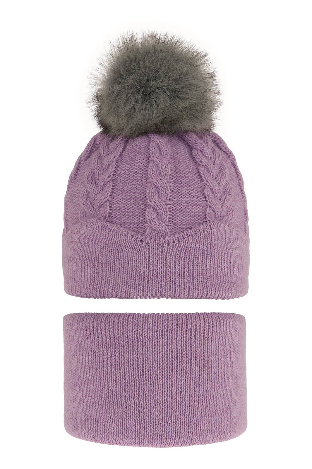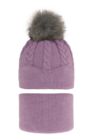 Winterset Mädchen: Mütze und Schlauchschal mit Bommel Violett Etula