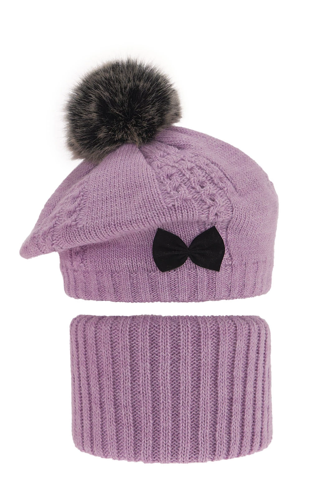 Winterset Mädchen: Mütze und Schlauchschal mit Bommel Violett Amora