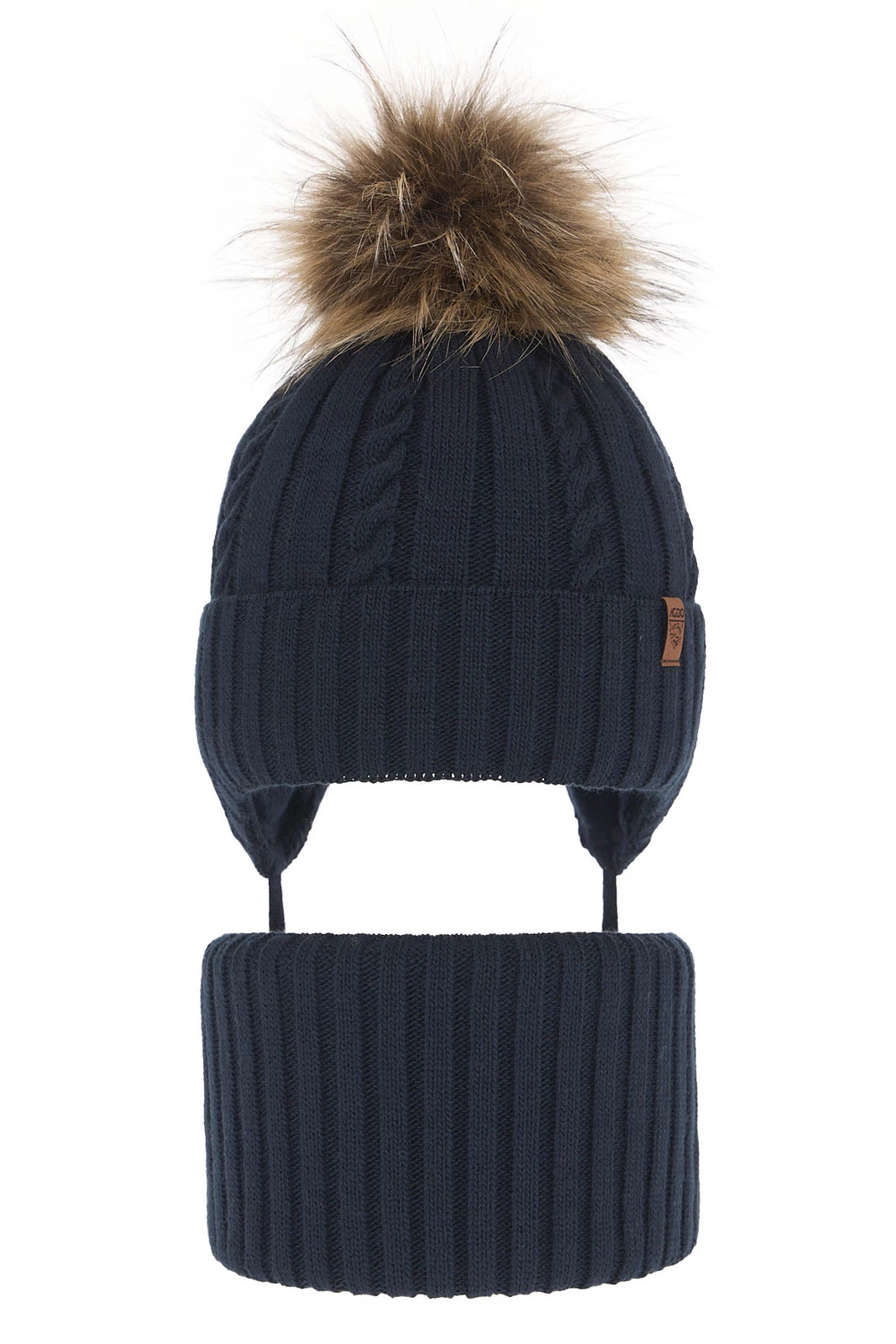 Winterset für Jungen: Mütze und Schlauchschal mit Bommel in Navy Blau Peter