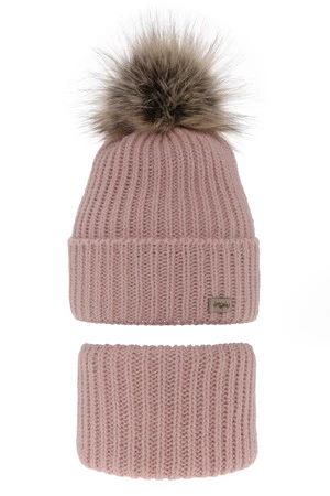 Winterset Mädchen: Mütze und Schlauchschal mit Bommel Rosa Willow