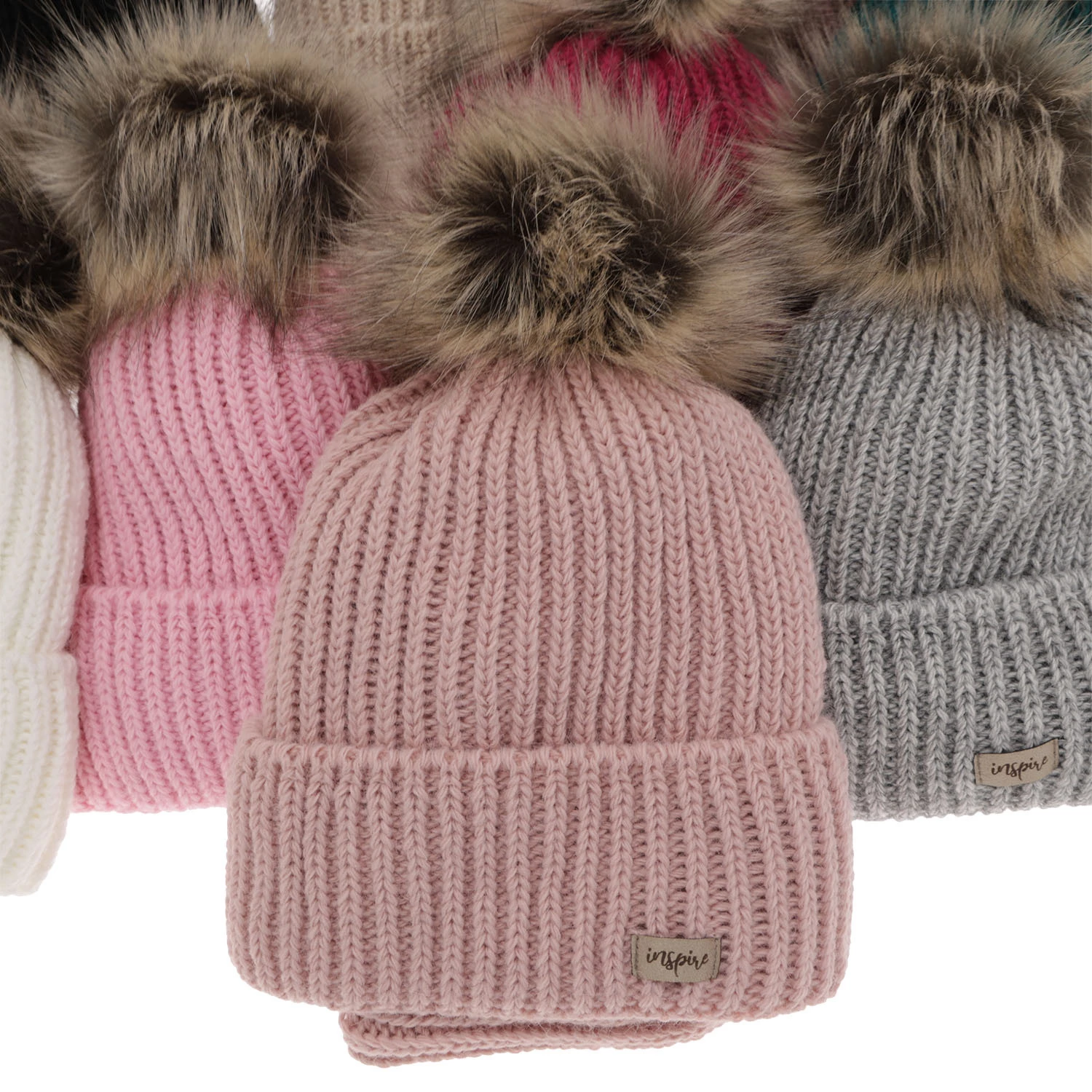 - Dekorative Bommel aus Kunstfell auf der Mütze
