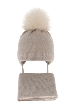 Winterset Mädchen: Mütze und Schal Merinowolle Beige Rosalina