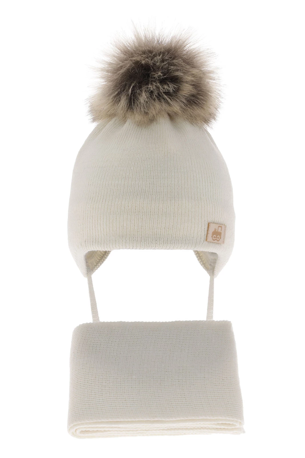 Winterset Jungen: Mütze und Schal Merinowolle Cremefarben Anastazy