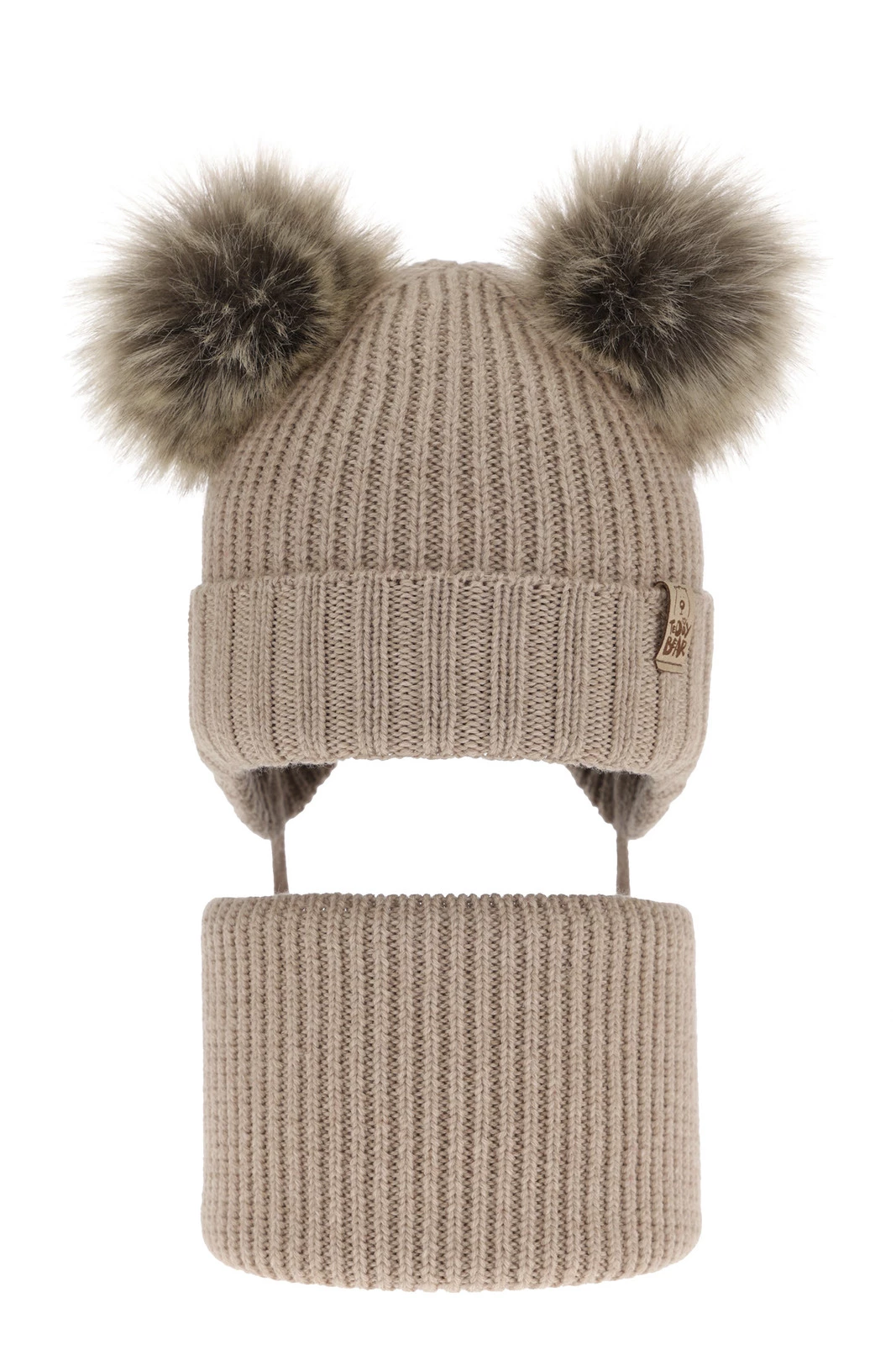 Winterset für Jungen: Mütze und Schlauchschal aus 100% extrafeiner Merinowolle in Beige Konor
