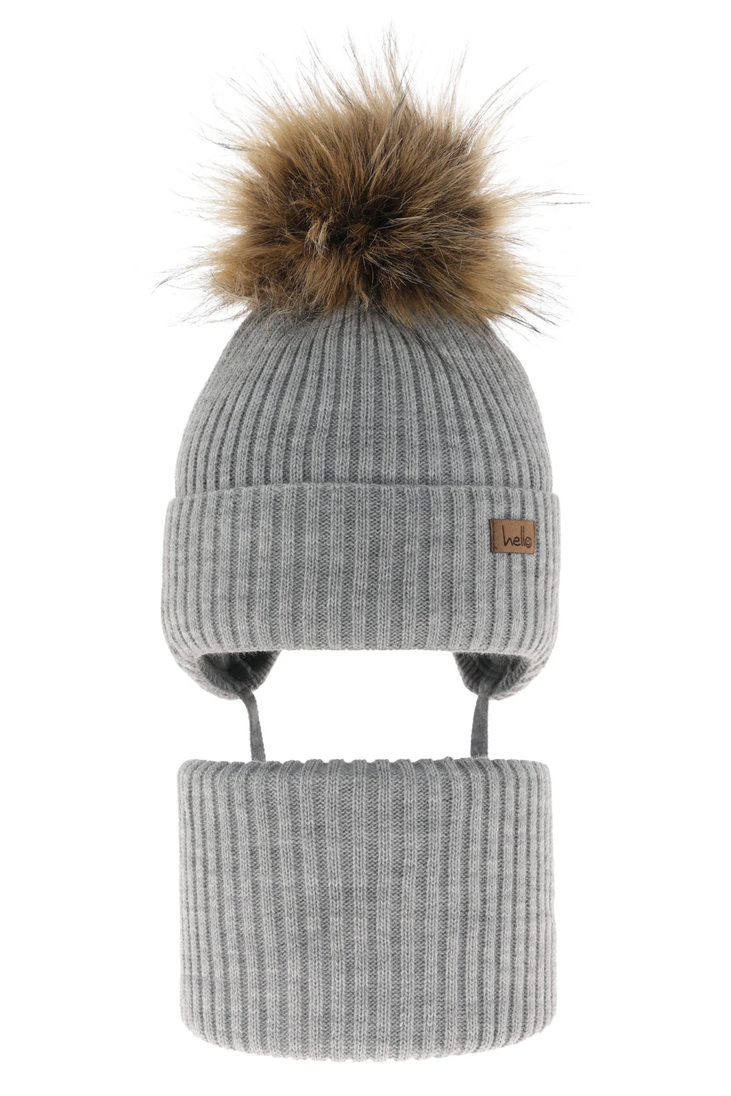Winterset für Jungen: Mütze und Schlauchschal mit Bommel in Grau Bergo