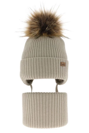 Winterset für Jungen: Mütze und Schlauchschal mit Bommel in Beige Bergo