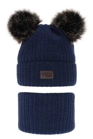 Winterset für Jungen: Mütze und Schlauchschal mit zwei Bommeln Navy Blau Tokio