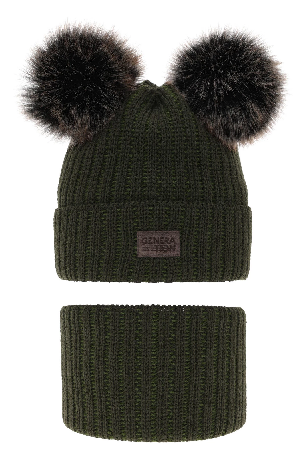 Winterset für Jungen: Mütze und Schlauchschal mit zwei Bommeln Khaki Tokio