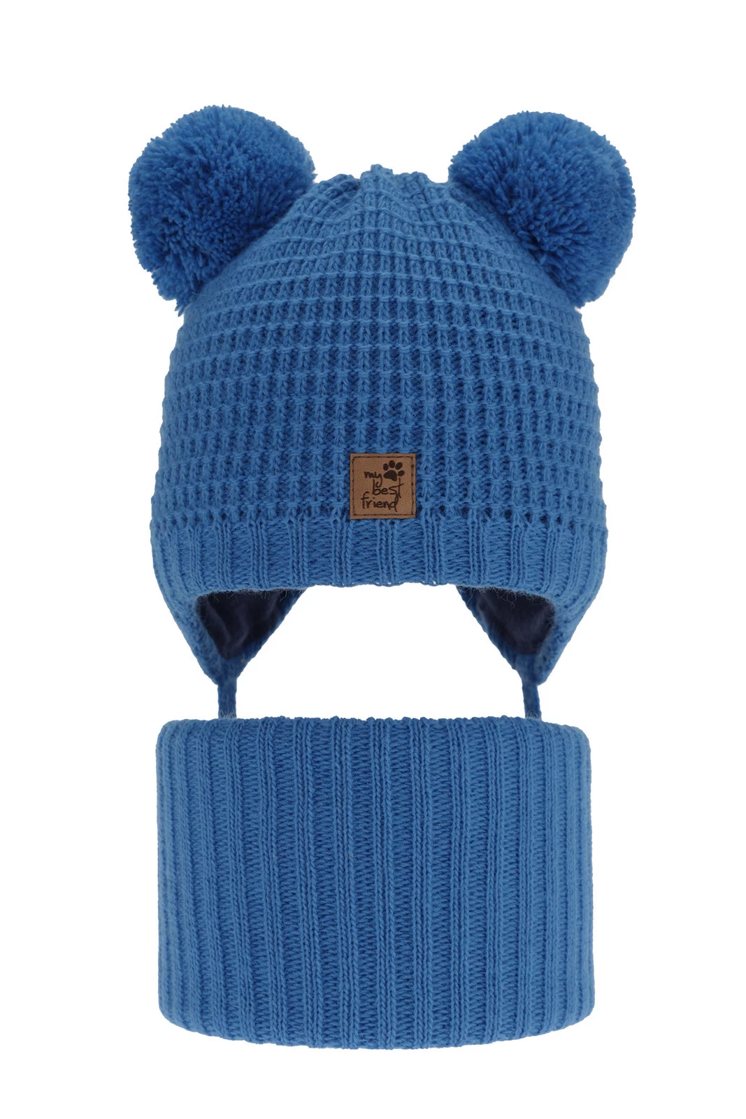 Winterset für Jungen: Mütze und Schlauchschal mit zwei Bommeln Blau Krispi