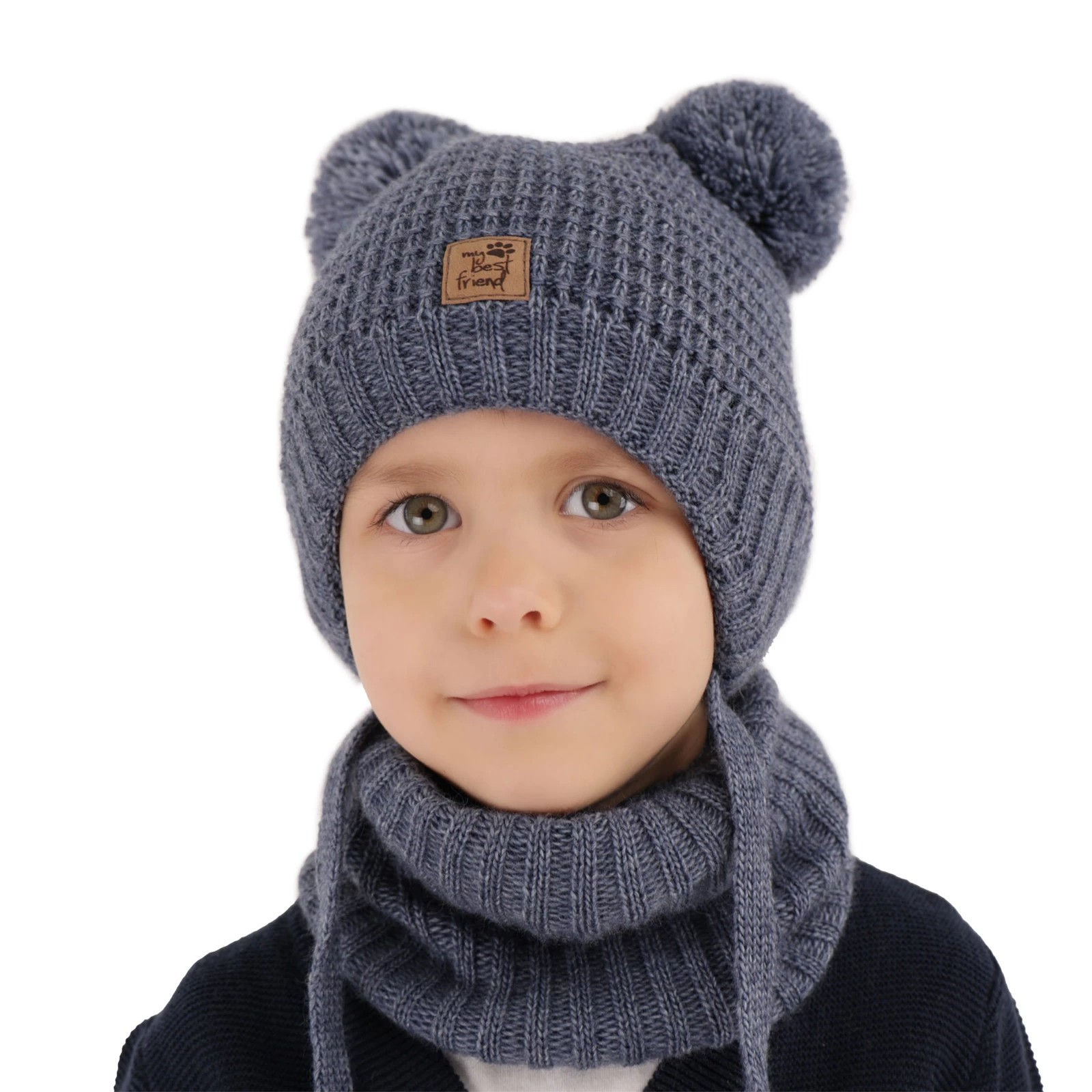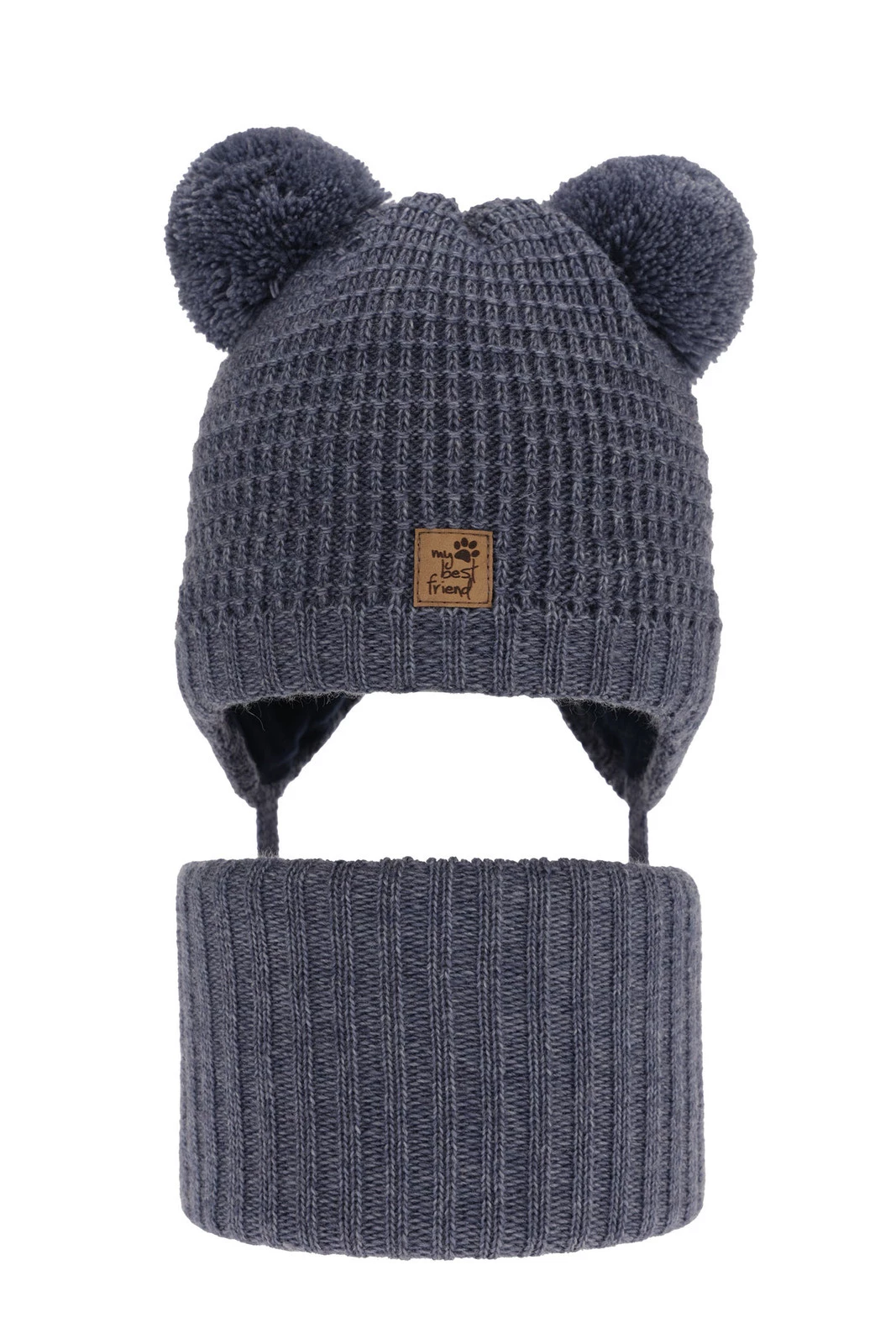 Das Winterset Krispi ist die ideale Wahl für die kalten Wintermonate, wenn nicht nur ein modisches Aussehen, sondern vor allem der Schutz vor Kälte Priorität hat. Das Set bestehend aus einer Mütze mit zwei Bommeln und einem Schlauchschal wurde für aktive Jungen konzipiert, die gerne Zeit im Freien verbringen, unabhängig vom Wetter.