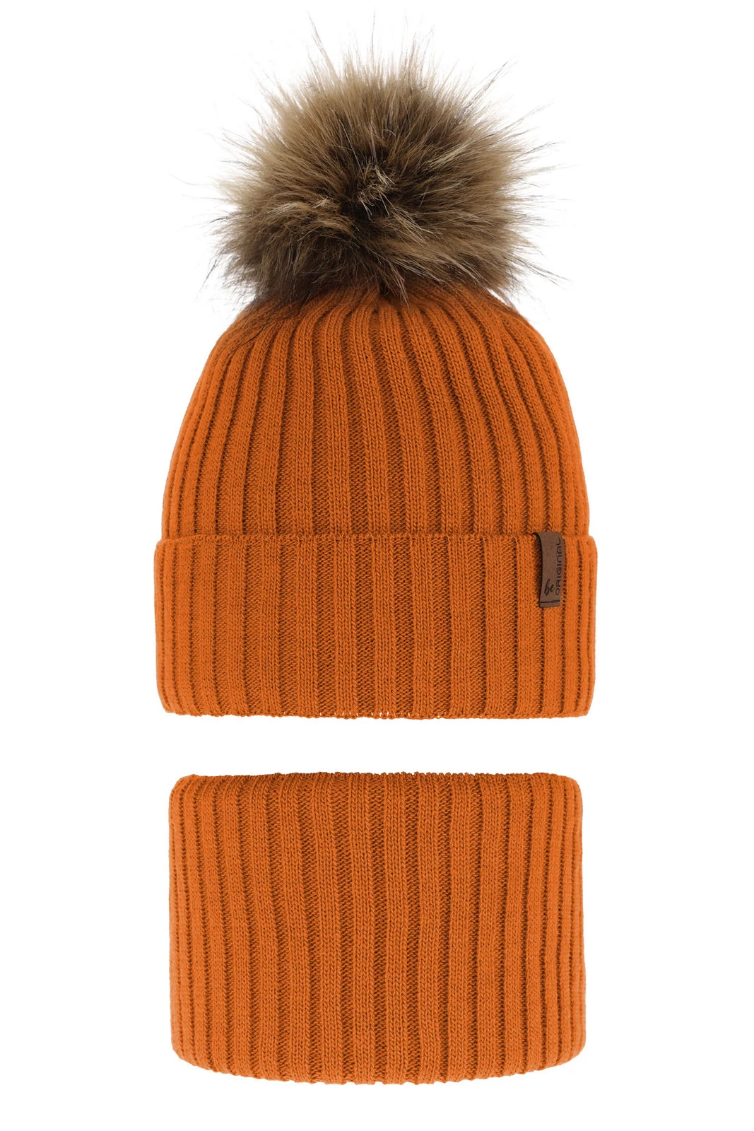 Winterset für Jungen: Mütze und Schlauchschal mit Bommel in Orange Onyks