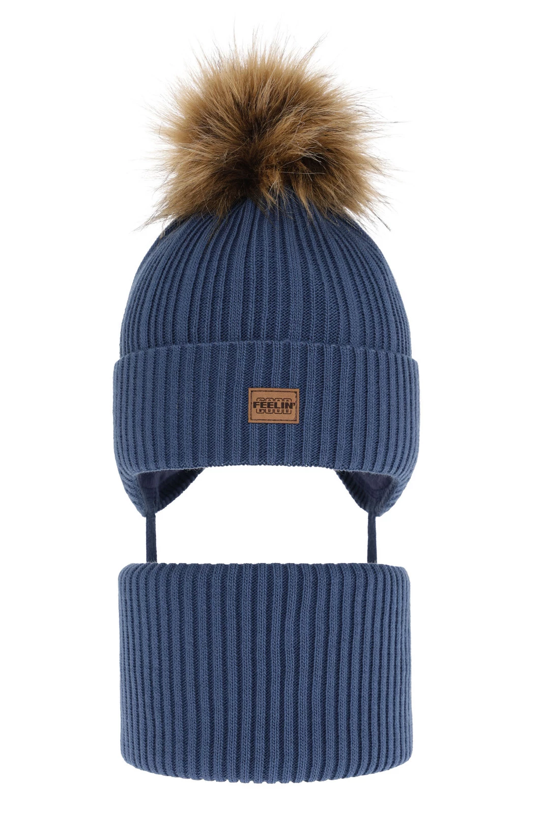 Winterset für Jungen: Mütze und Schlauchschal mit Bommel in Blau Eger