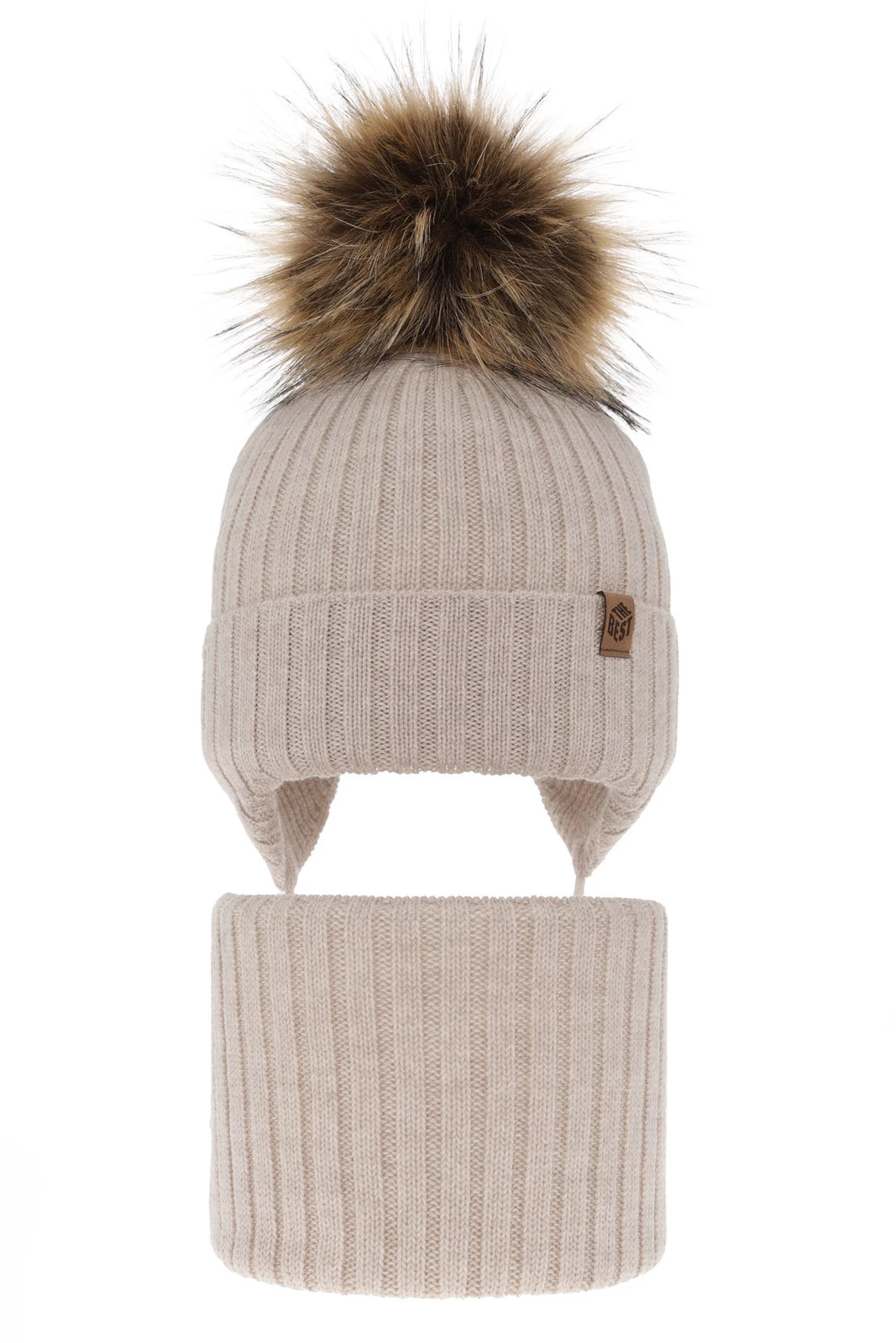 Winterset für Jungen: Mütze und Schlauchschal aus 100% extrafeiner Merinowolle in Beige Juno