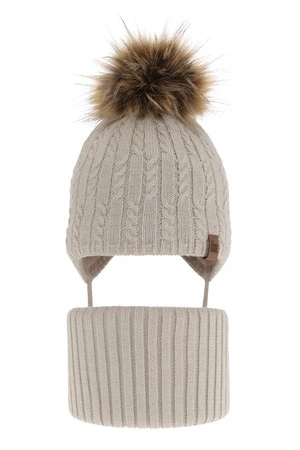 Winterset für Jungen: Mütze und Schlauchschal mit Bommel in Beige Indigo