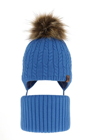 Winterset für Jungen: Mütze und Schlauchschal mit Bommel in Blau Indigo