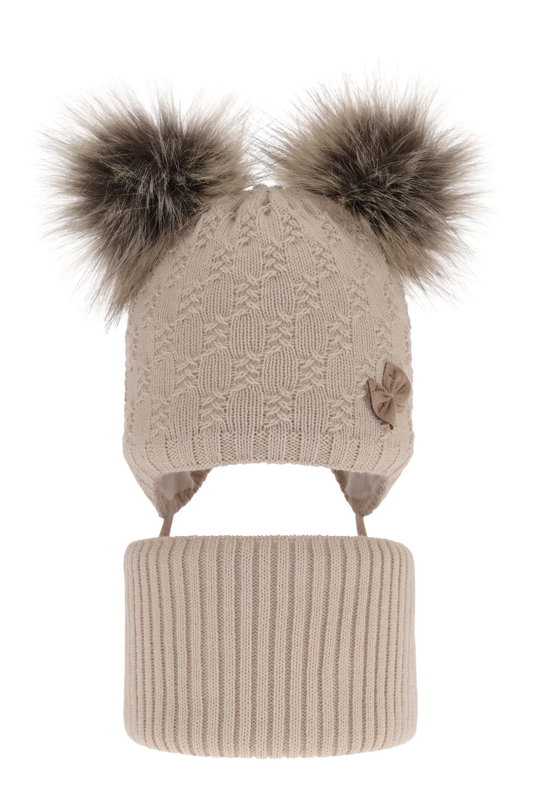 Winterset für Mädchen: Mütze und Schlauchschal mit zwei Bommeln in Beige Bettina