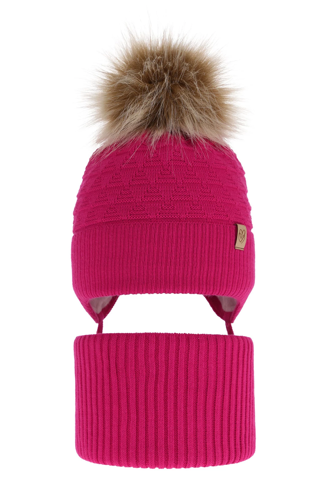 Winterset für Mädchen: Mütze und Schlauchschal mit Bommel in Rosa Egeria