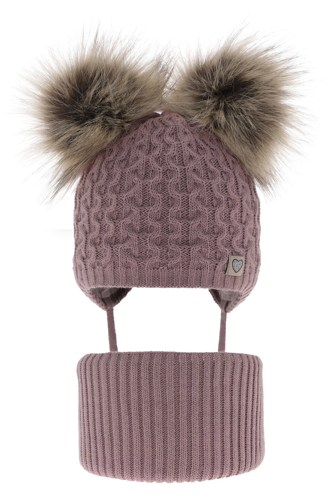 Die praktischen Bindebänder sind nicht nur ein dekoratives Element, sondern vor allem eine funktionale Lösung, die verhindert, dass die Mütze beim Spielen im Freien verrutscht. Dank ihnen bleibt das Winterset für Mädchen auch bei intensiven Aktivitäten an seinem Platz.
