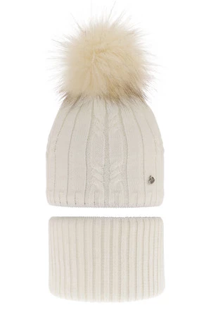 Winterset Mädchen: Mütze und Schlauchschal mit Bommel Cremefarben Amaltea