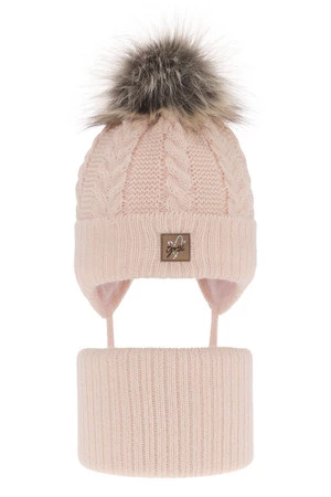 Das Winterset für Mädchen Finess zeichnet sich durch sein sorgfältig gearbeitetes Zopfmuster aus, das ihm nicht nur ein einzigartiges Aussehen verleiht, sondern auch seine Wärmeeigenschaften verbessert. Die Mütze verfügt über bequeme Bänder, die sie perfekt am Gesicht anliegen lassen und die empfindlichen Ohren vor Kälte schützen, während der Schlauchschal den Hals optimal vor Wind abschirmt.