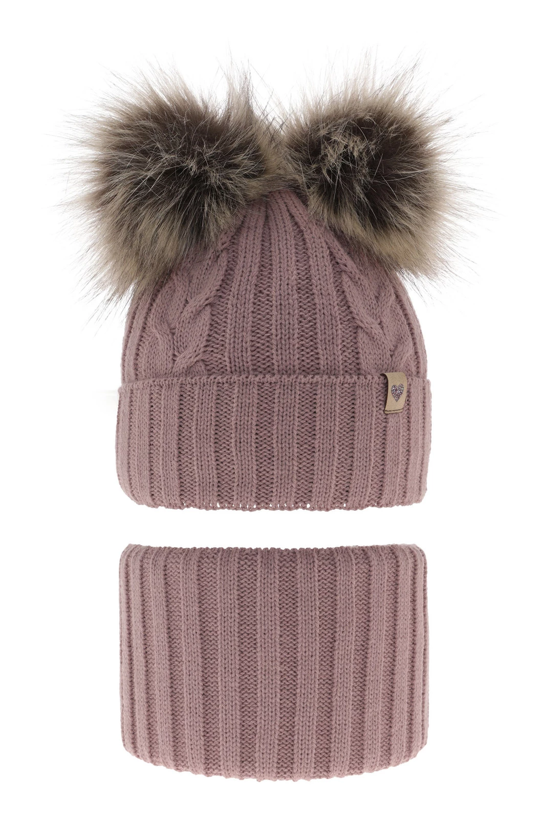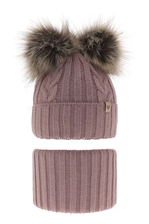 Winterset für Mädchen: Mütze und Schlauchschal mit zwei Bommeln in Rosa Amala