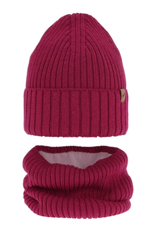 Winterset für Mädchen: Mütze und Schlauchschal aus Merinowolle in Rosa Mesalia