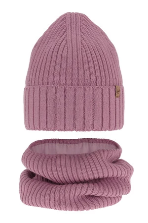 Winterset für Mädchen: Mütze und Schlauchschal aus Merinowolle in Violet Mesalia